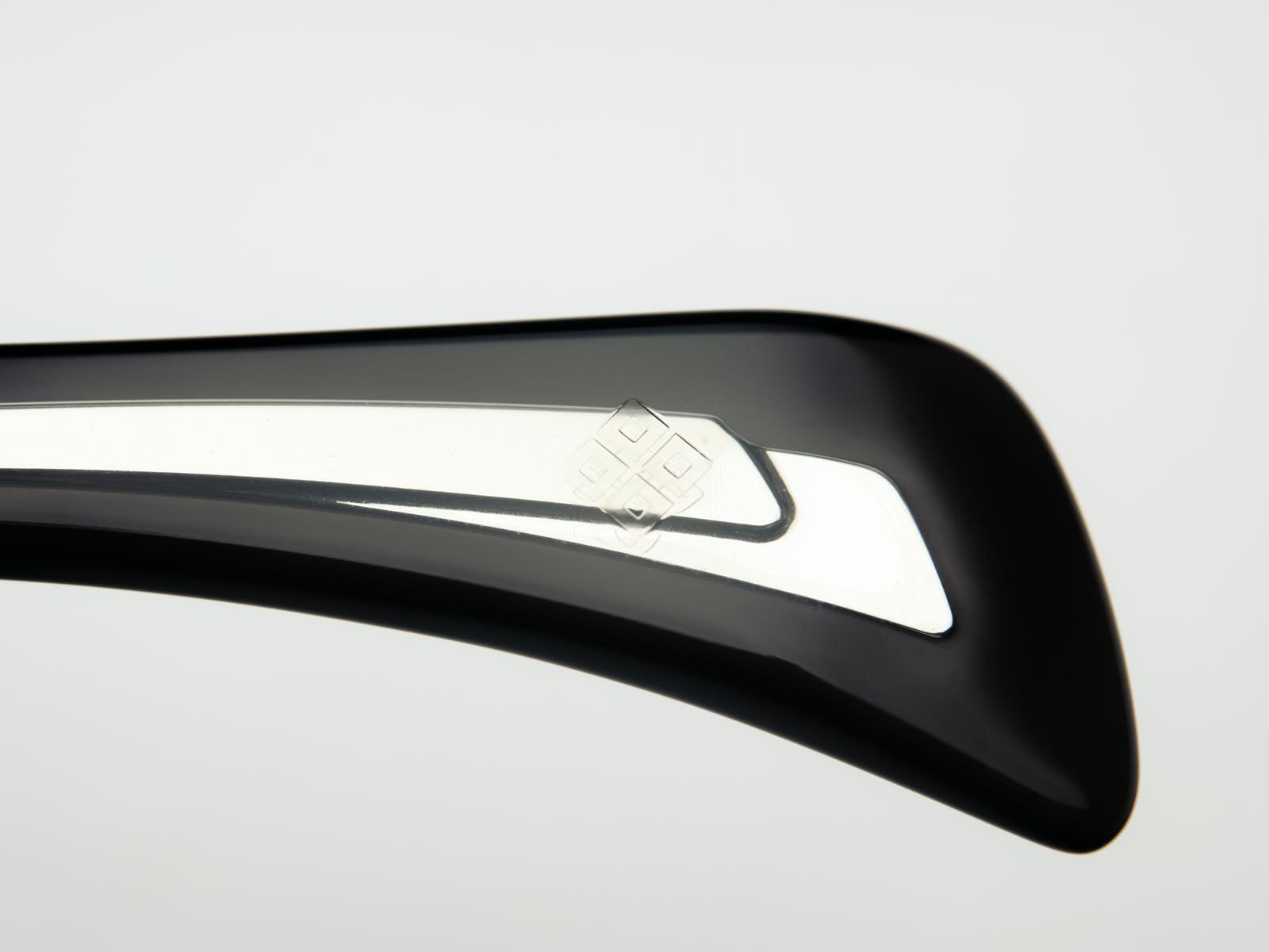 ウェリントンタイプのデザインがお顔に洗練された印象を与えてくれるモデル。フロントに施されたエッジが職人の技術と磨きへのこだわりを感じさせてくれます。テンプルは太めで存在感のあるデザイン。芯が前と後ろに分割されているキャッチーなデザインで、視点によってアイウェアの表情が変わります。職人がひと手間もふた手間もかけて作り上げたモデルです。テンプルの飾りは日本の桜をモチーフにしており、職人の潔い一本気を表現。