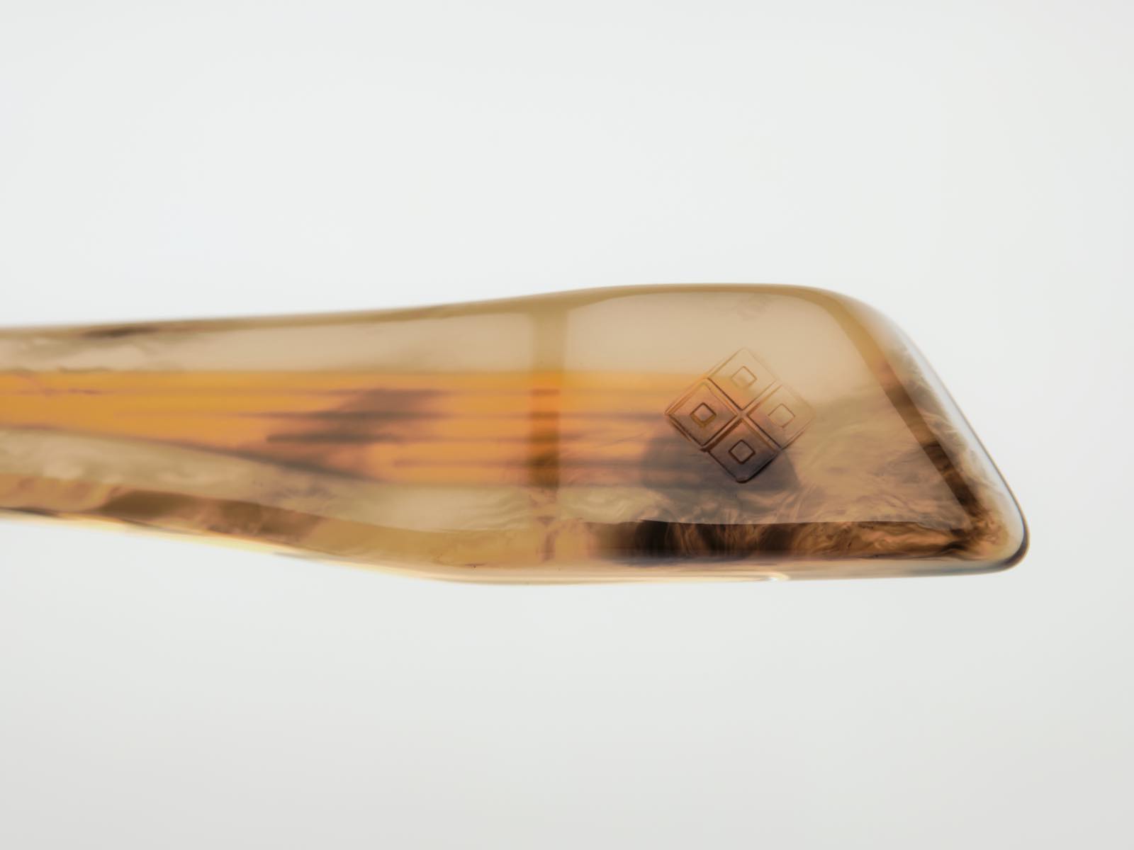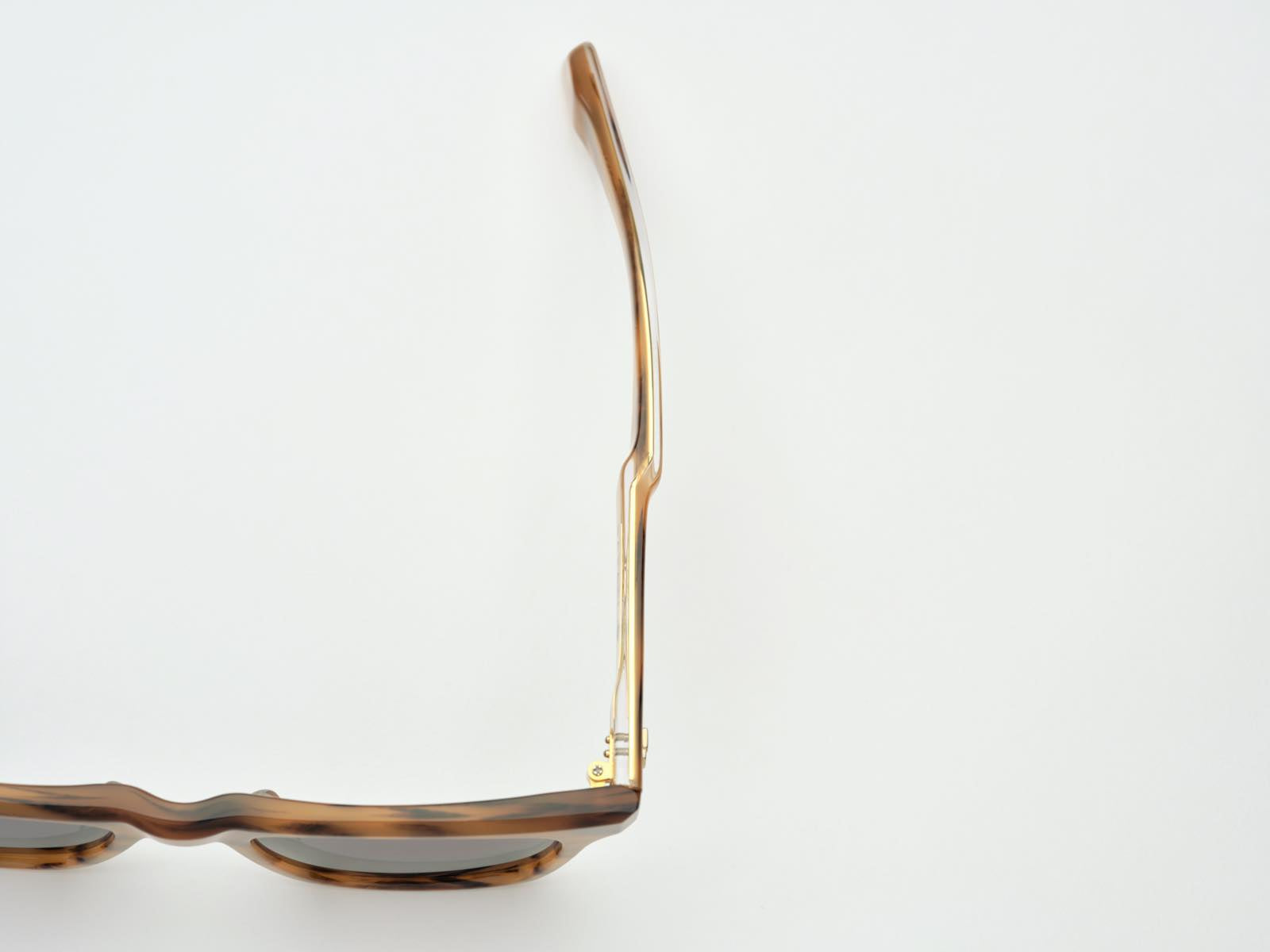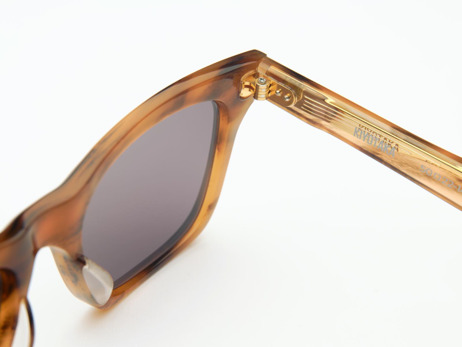 大き目のウェリントンタイプでフロントデザインはベーシックなためお顔を選ばない、掛けやすさナンバーワンのモデル。その分カラーに遊び心を詰め込むことでコーディネートのアクセントになるようにしています。テンプルはKAORUと共通の特許構造で、細めながらもお顔を包み込むような掛け心地の良い仕様です。テンプルの飾りは日本の桜をモチーフにしており、職人の潔い一本気を表現。
