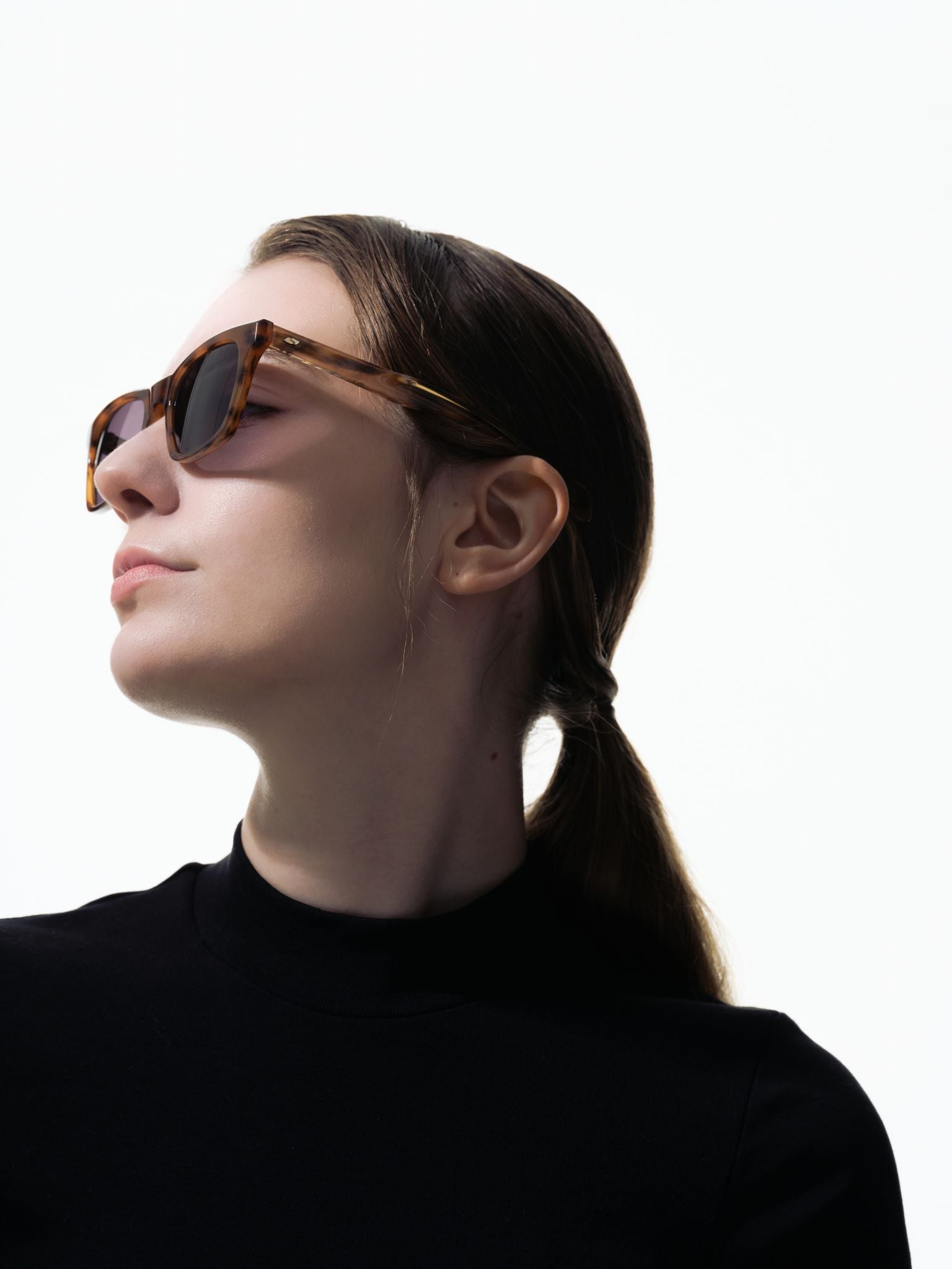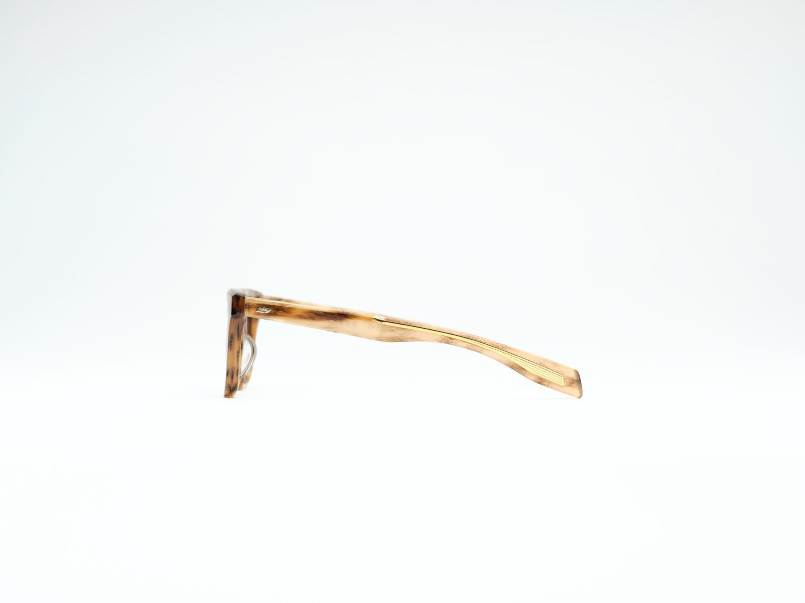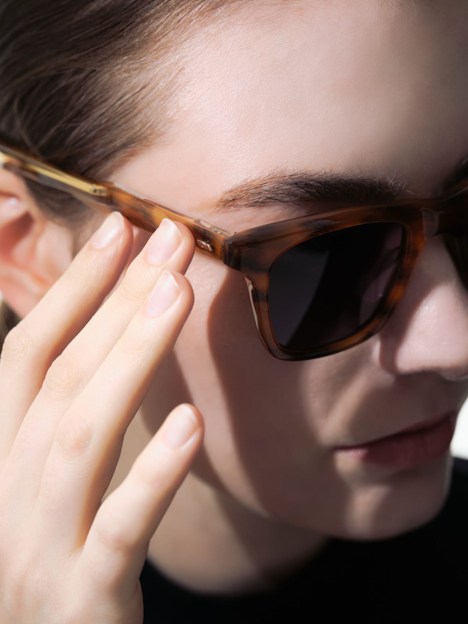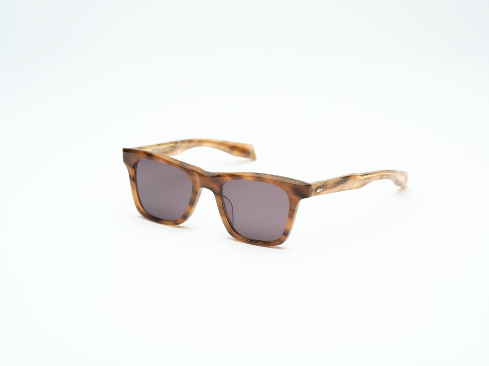 大き目のウェリントンタイプでフロントデザインはベーシックなためお顔を選ばない、掛けやすさナンバーワンのモデル。その分カラーに遊び心を詰め込むことでコーディネートのアクセントになるようにしています。テンプルはKAORUと共通の特許構造で、細めながらもお顔を包み込むような掛け心地の良い仕様です。テンプルの飾りは日本の桜をモチーフにしており、職人の潔い一本気を表現。