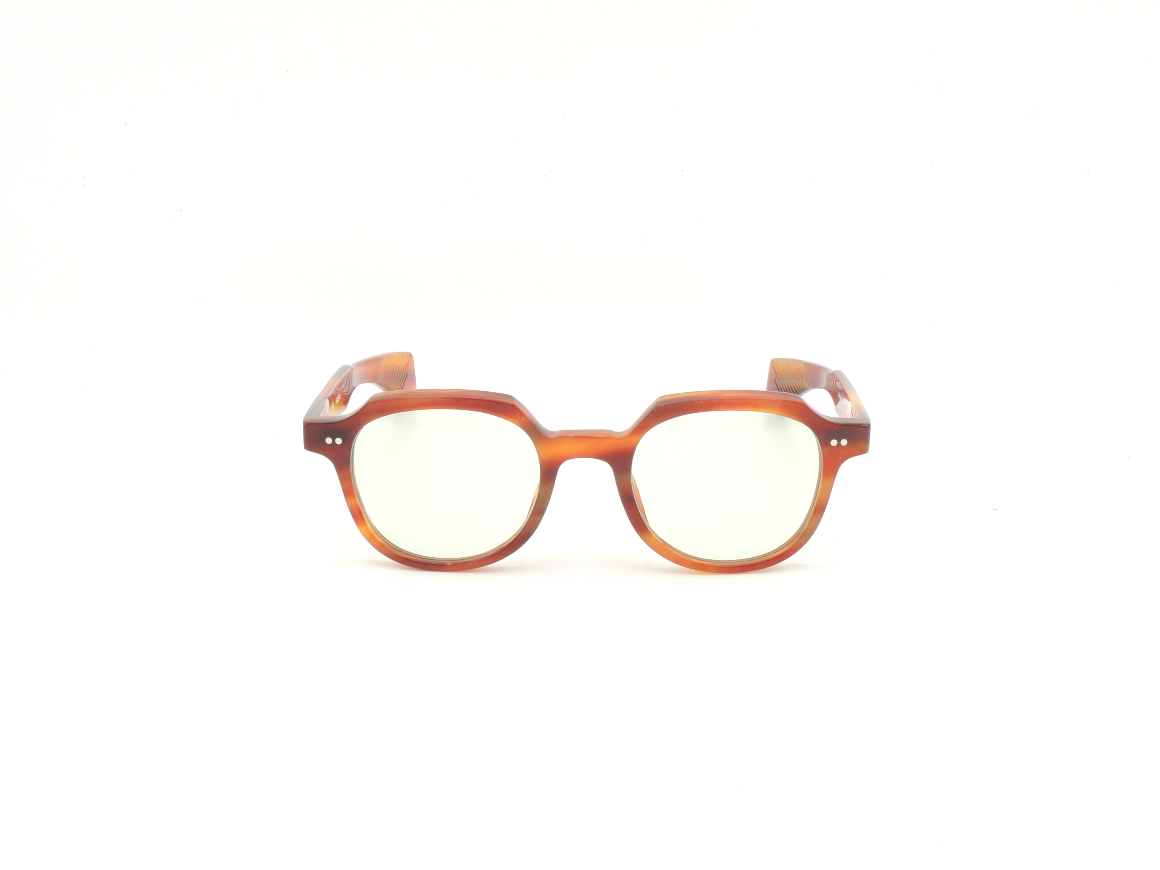 SSK-04のクラウンパントは、フロント上部のストレートなラインを広めに取っているため、カジュアルになりすぎない印象を与えてくれるデザイン。丸みのあるボストンシェイプに比べると目元を程よくシャープに縁取ってくれます。男女共に掛けやすく、カジュアル、フォーマルどちらのコーディネートも引き立てつつ、無難になりすぎない優れもの。