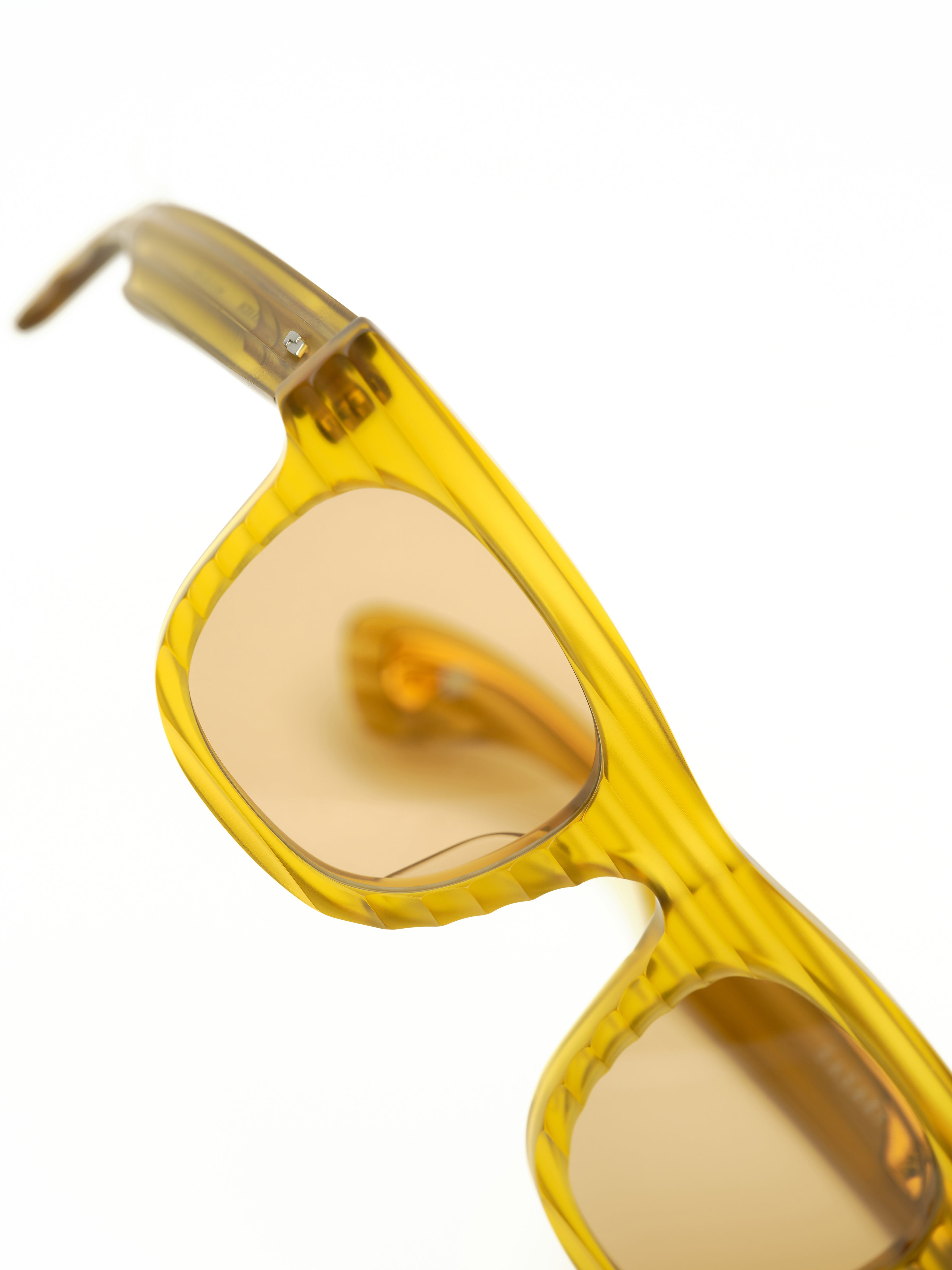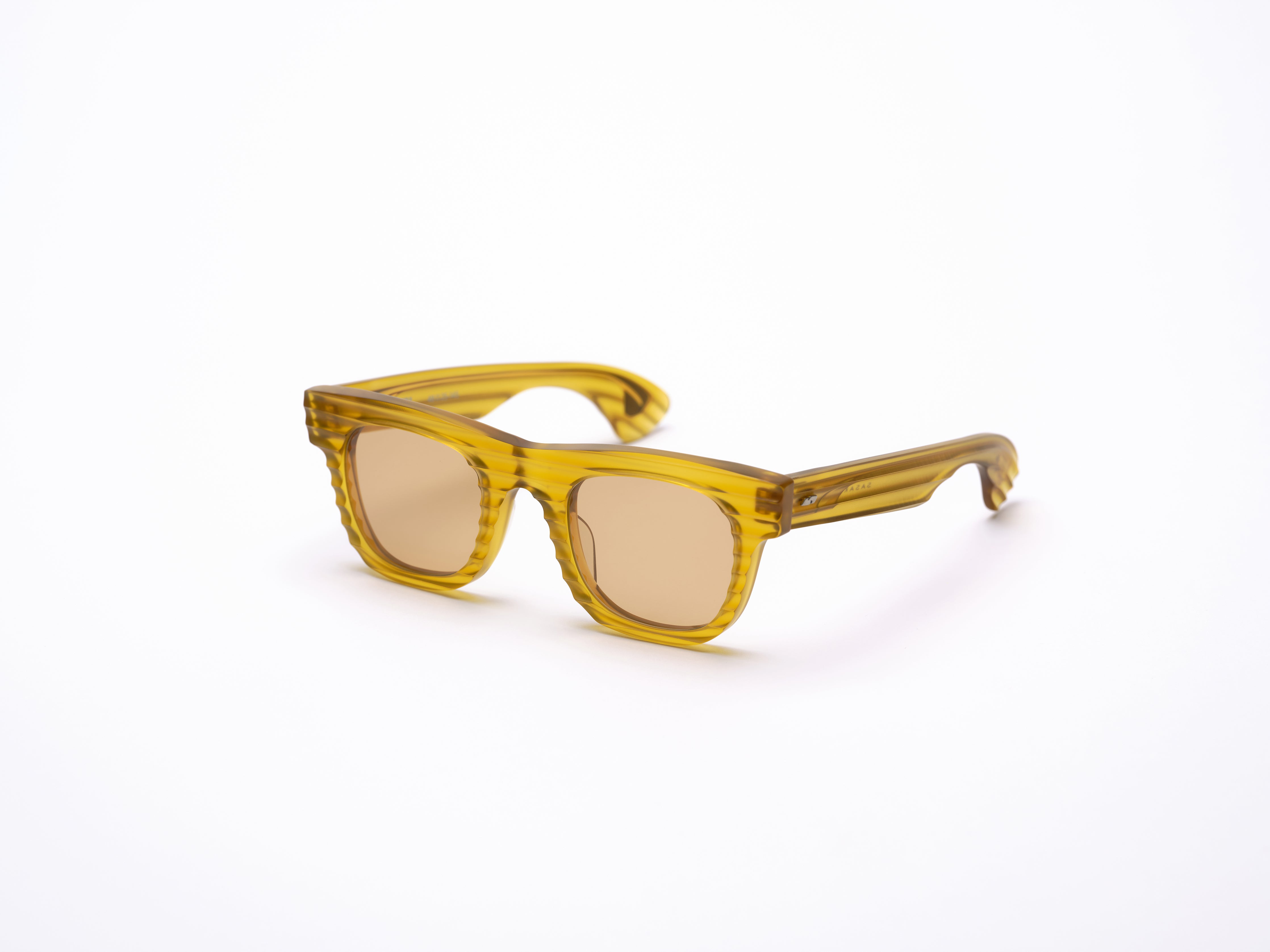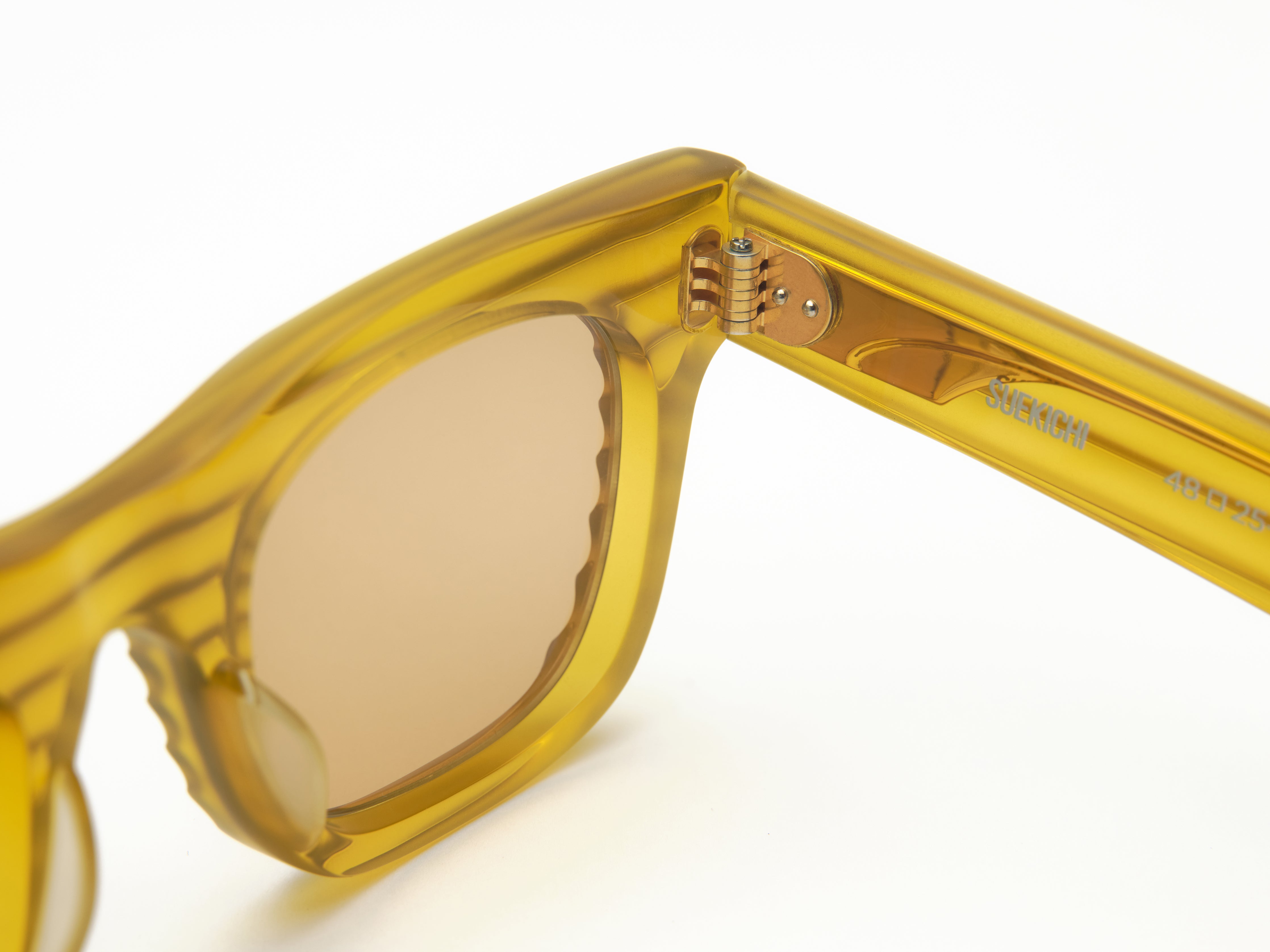 佐々木セルロイド創業者の末吉にちなんで名づけられたアイコンモデル。表面に波形状で掘られたデザインが技術力の証です。テンプルの飾りは日本の桜をモチーフにしており、職人の潔い一本気を象徴しています。お顔に付けるだけでコーディネート全体に圧倒的なインパクトと個性を与えてくれます。2023年Silmo d'orファイナリスト選出モデル。