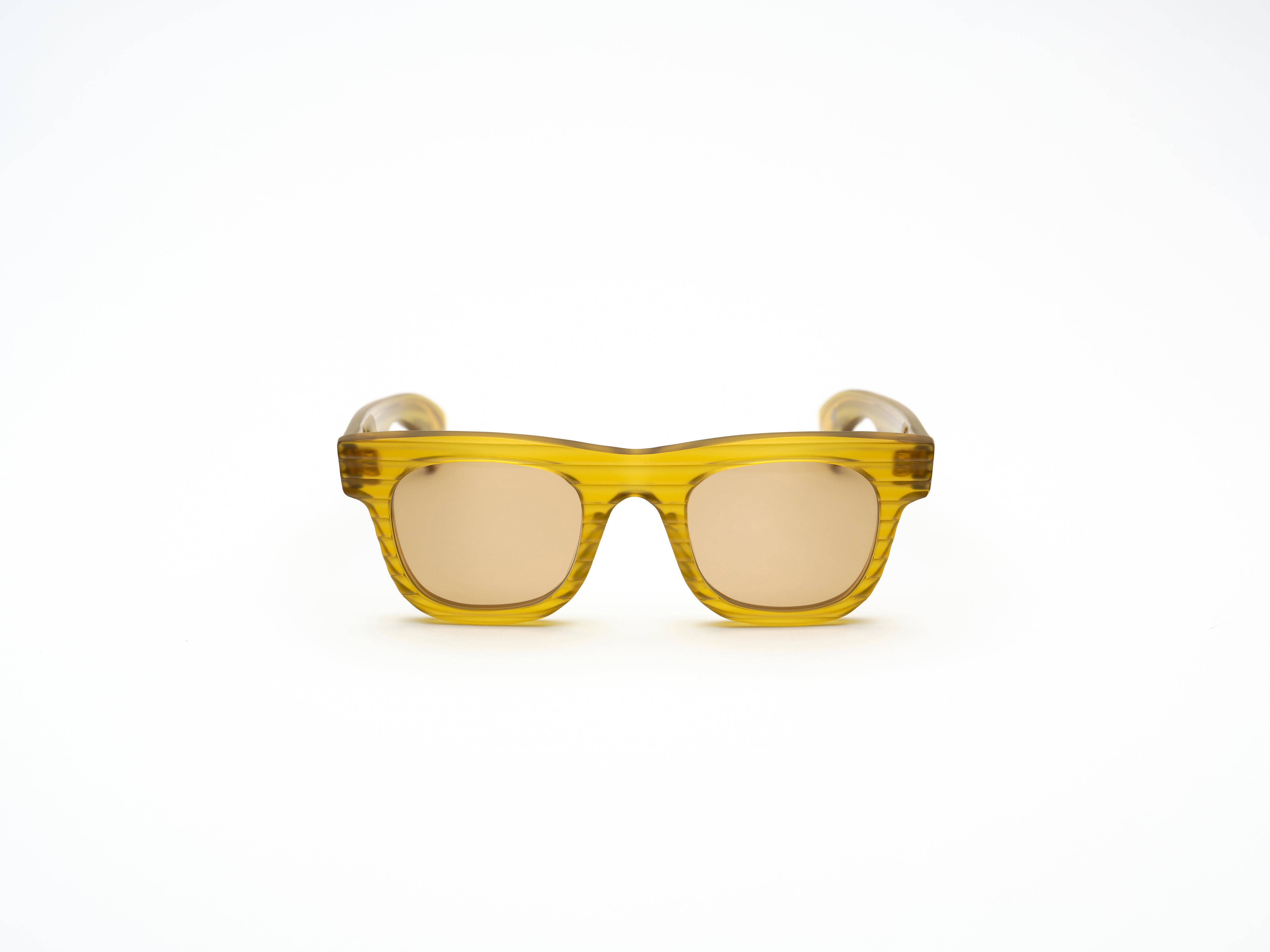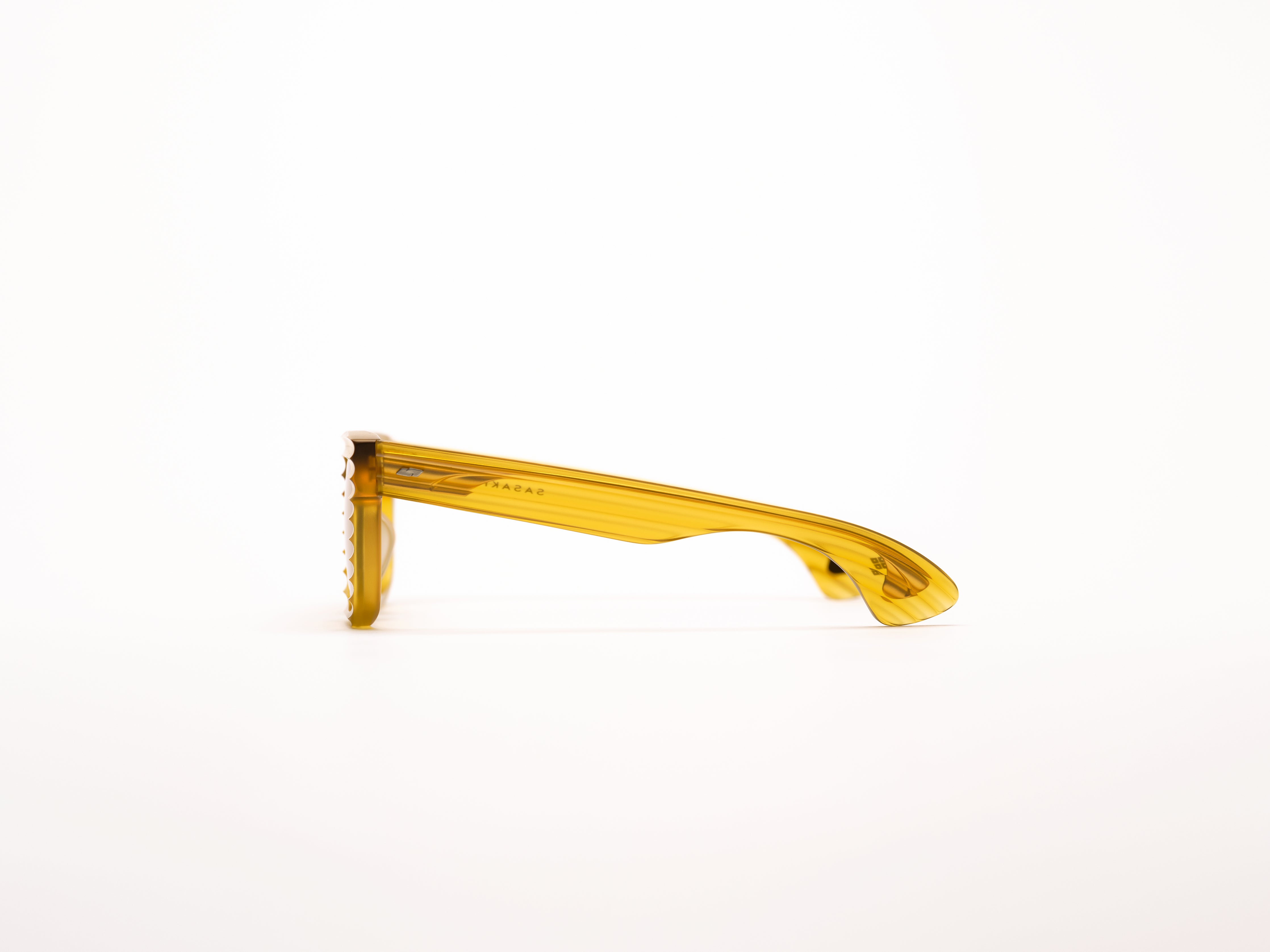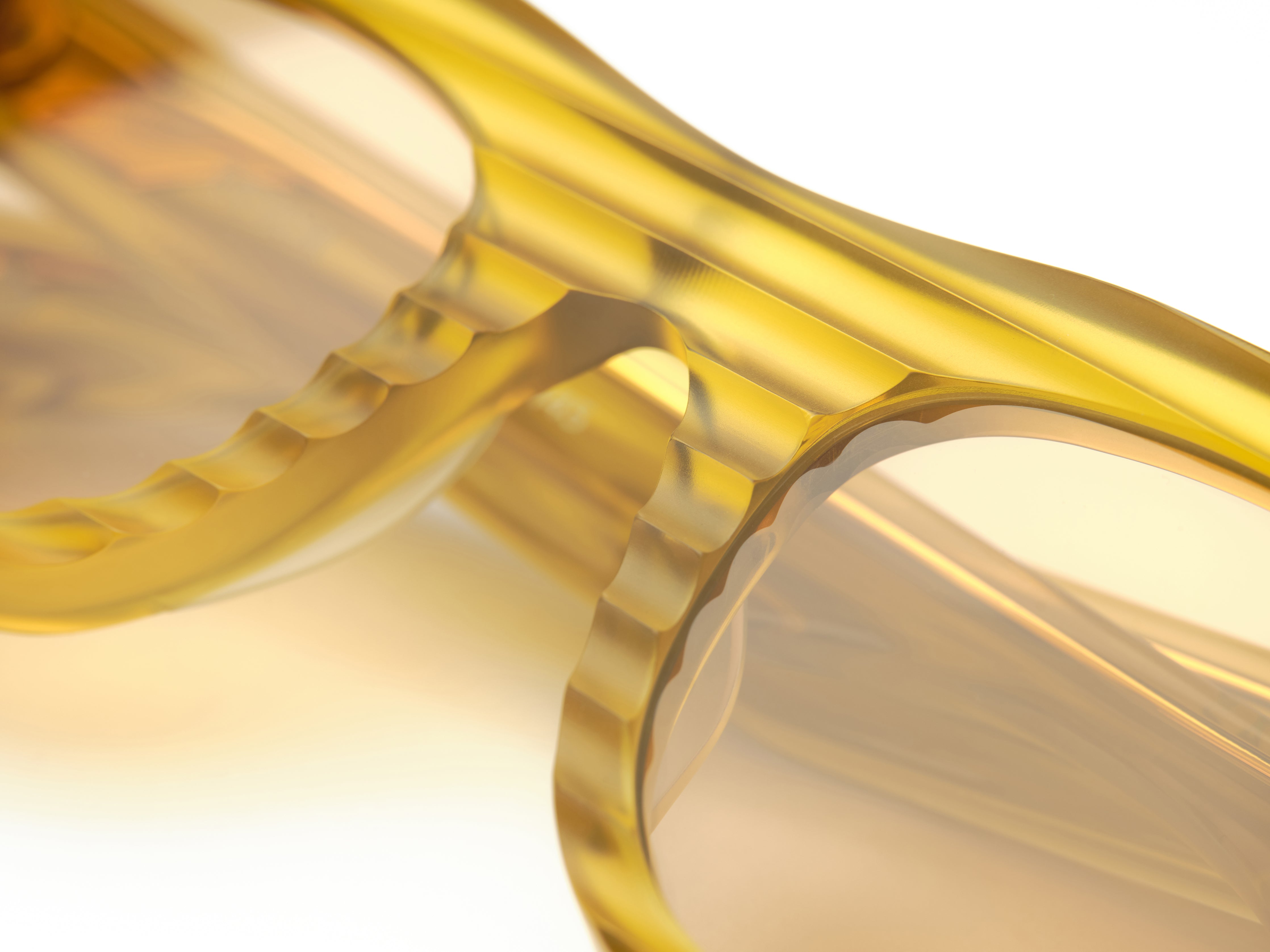 佐々木セルロイド創業者の末吉にちなんで名づけられたアイコンモデル。表面に波形状で掘られたデザインが技術力の証です。テンプルの飾りは日本の桜をモチーフにしており、職人の潔い一本気を象徴しています。お顔に付けるだけでコーディネート全体に圧倒的なインパクトと個性を与えてくれます。2023年Silmo d'orファイナリスト選出モデル。