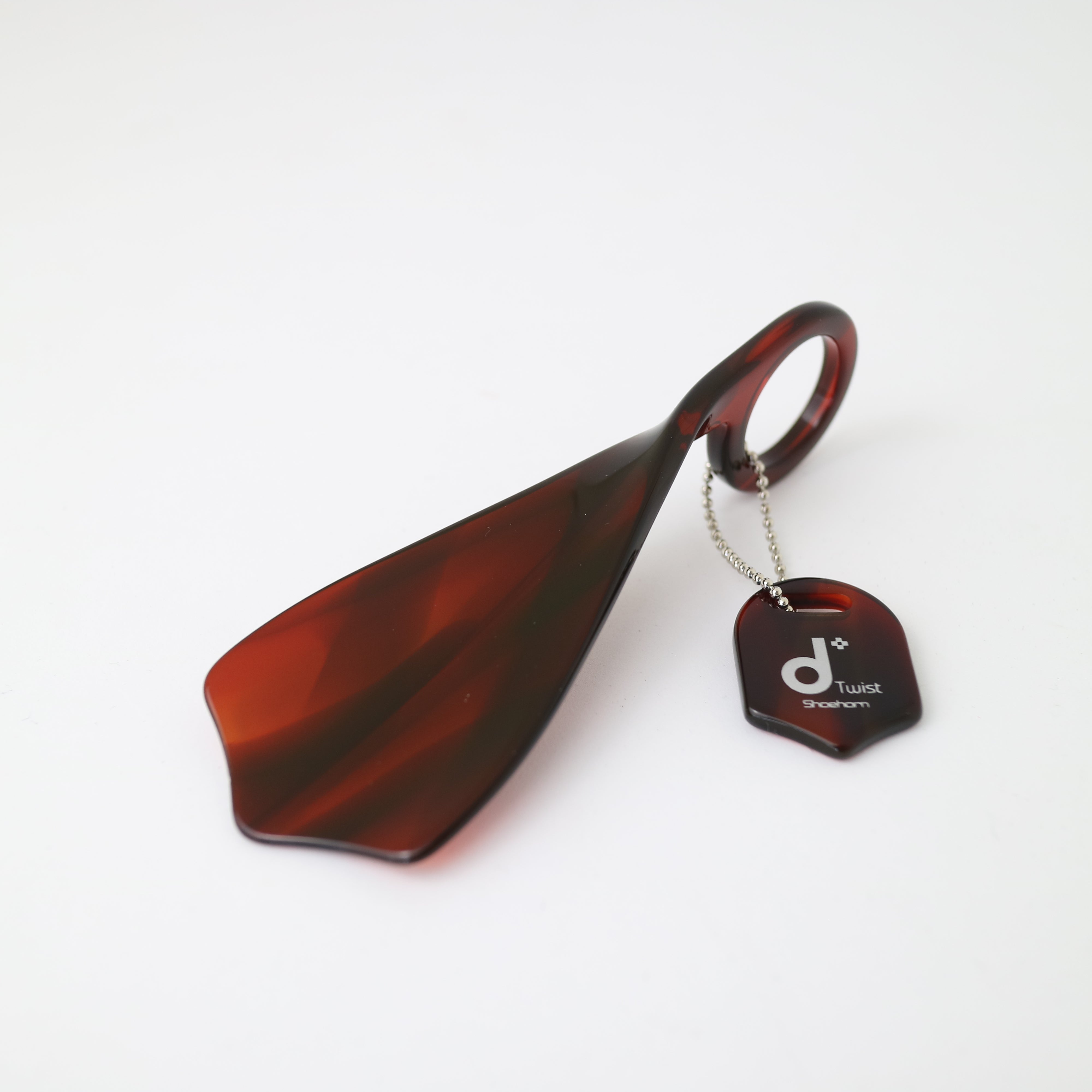 素材はメガネフレームに使用するセルロースアセート。「d」の文字をひねったようなデザインは指を絡めやすく、靴を履く際に非常に使いやすい形となっています。大切な人への贈り物としてもおすすめ。いつでも手が届くところに置いて、日常使いしてほしい逸品です。