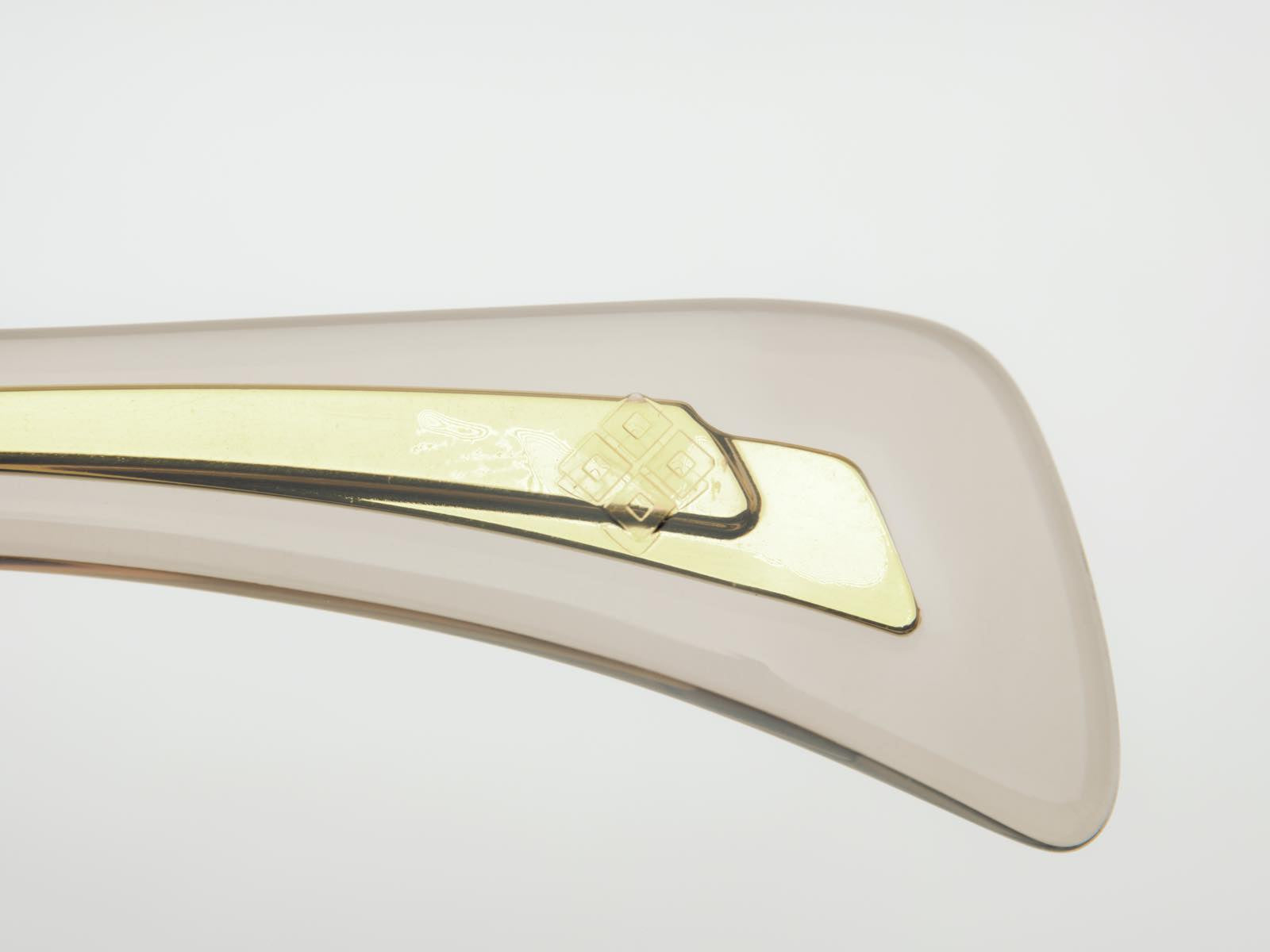 A model with a Wellington-type design that gives a sophisticated impression to your face. The edges on the front showcase the craftsmanship and dedication to polishing. The temples are thick and have a design with presence. The core is divided into front and back in a catchy design, changing the eyewear's expression depending on the viewpoint. This model is crafted with extra care by artisans. The decoration on the temples is inspired by Japanese cherry blossoms, expressing the artisan's straightforward and earnest spirit.