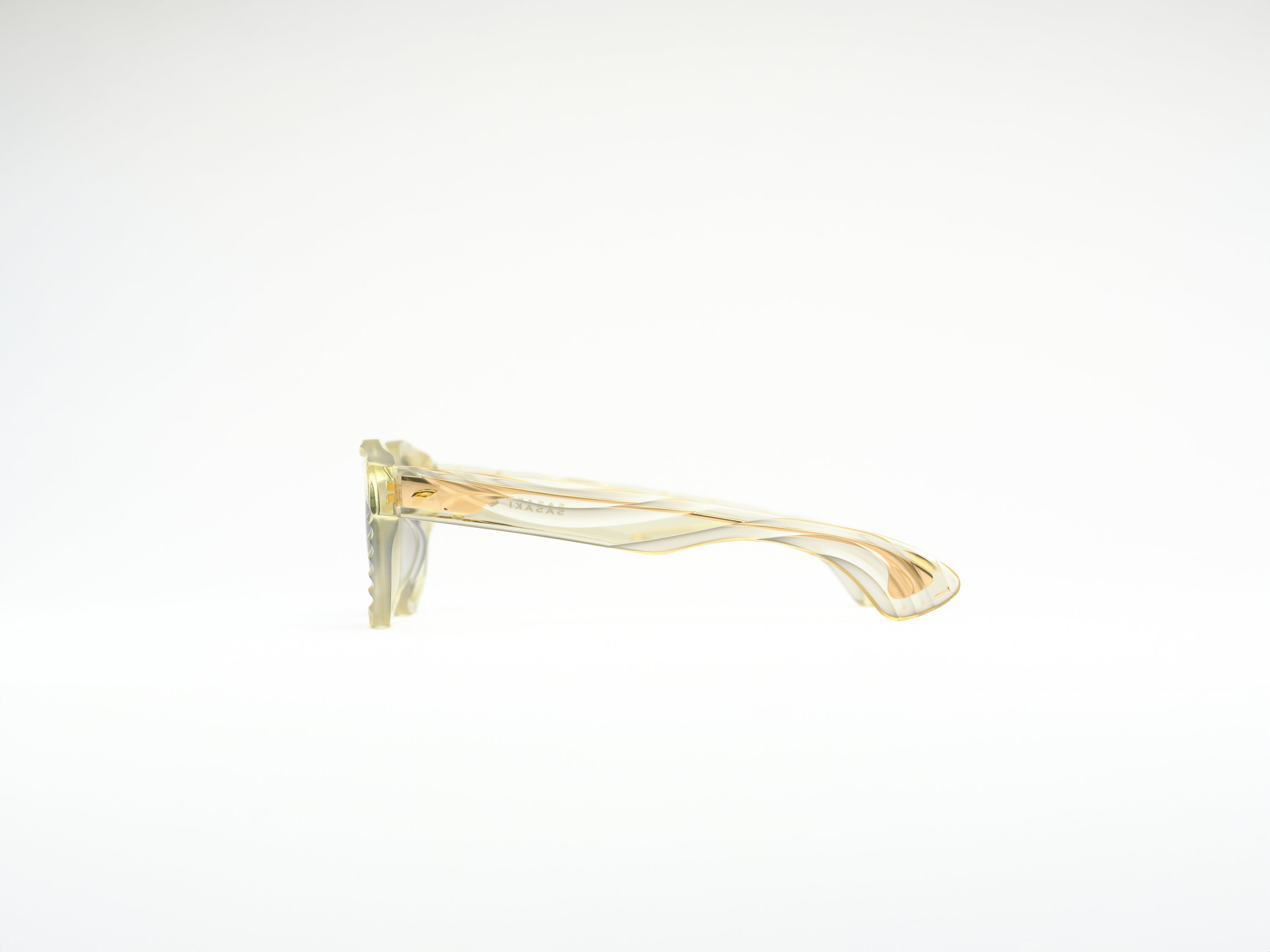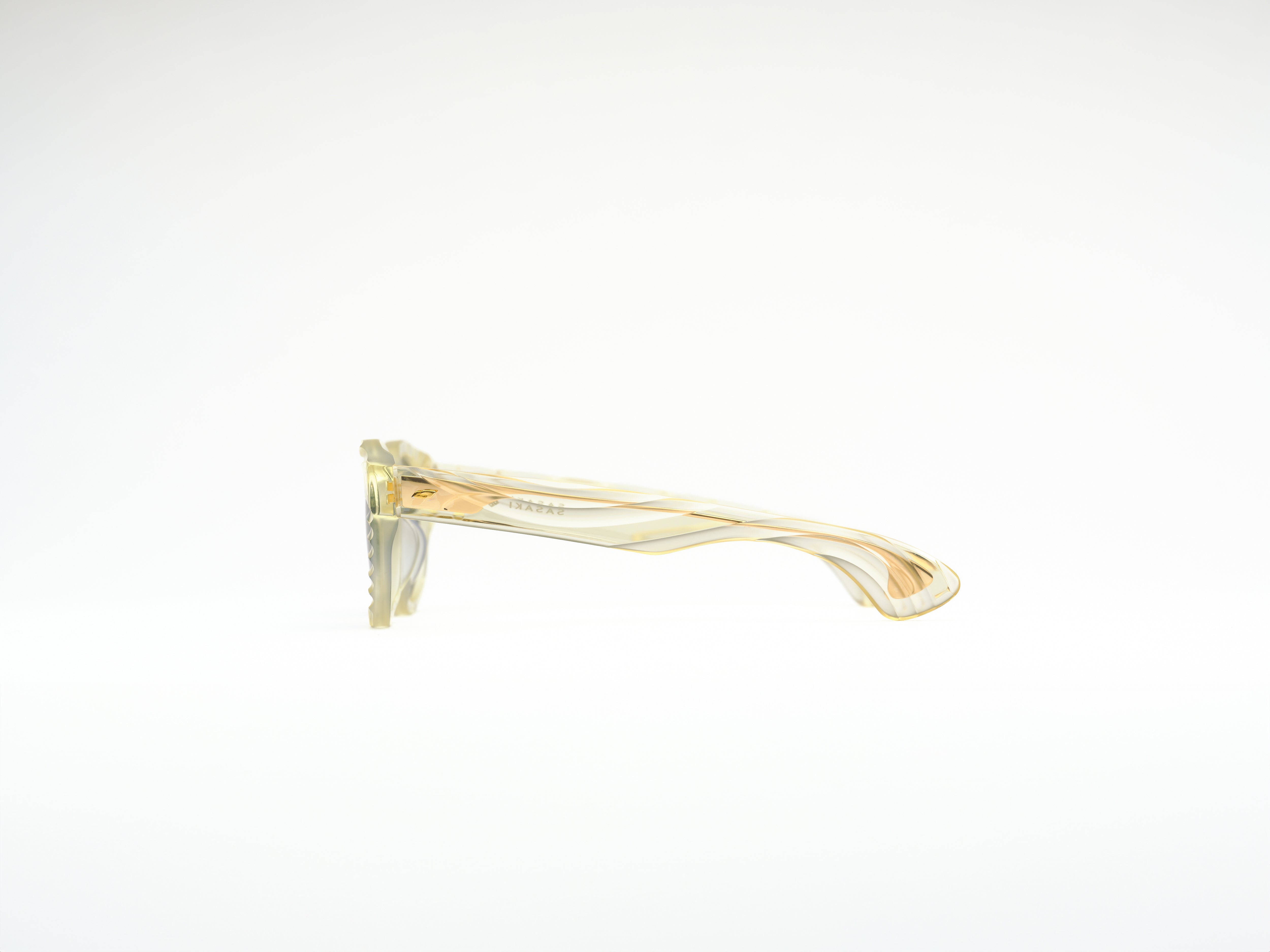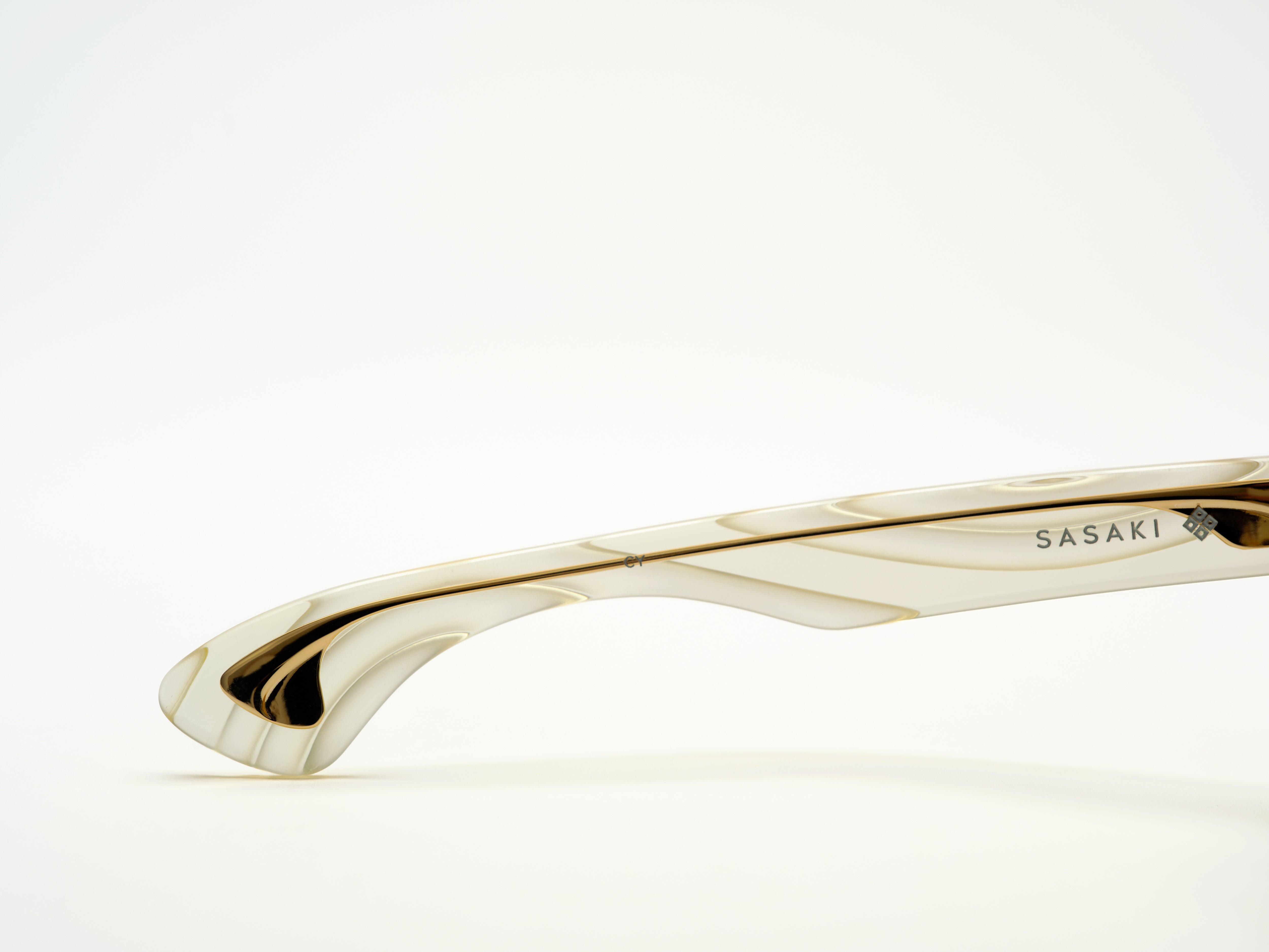 La marque "SASAKI" incarne plus de 100 ans d'histoire et de savoir-faire de Sasaki Celluloid Kogyo. Le logo de la marque arbore le kamon (emblème familial) de la famille Sasaki, représentant la qualité suprême et la fierté familiale. Le kamon est apposé uniquement sur la marque iconique "SASAKI" et, avant expédition, un membre de la famille Sasaki effectue une inspection finale et appose manuellement le kamon en gage de qualité. Les noms des modèles, tels que SUEKICHI, KAZUMA, TAKAE, reflètent les membres de la famille Sasaki. Ce produit est le fruit de la fusion entre le savoir-faire traditionnel des artisans de l'usine de fabrication de Sabae et un design audacieux, offrant à la fois un confort optimal et une sensation d'élévation en le portant.